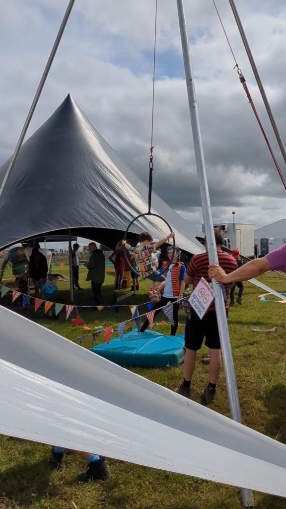 After set up we are then ready for the fun to begin with the circus workshop.  often we start with a showtime , so people can watch the show then have a go.