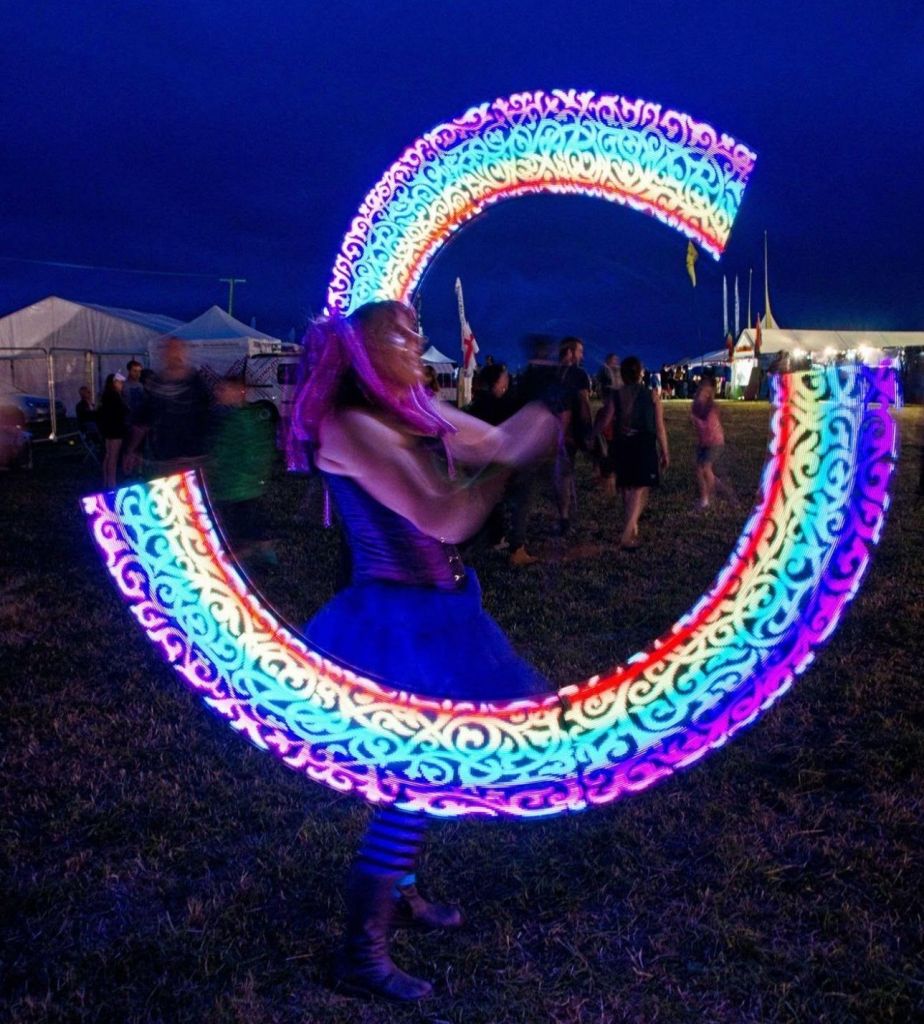 Just out of interest this photo shows our LED pixel poi , which make images in the air whilst you spin them . We love using them at events to add to the ambience.