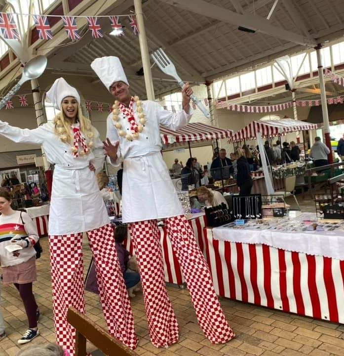 To book our stiltwalking chefs or any of our themed stiltwalkers here .
