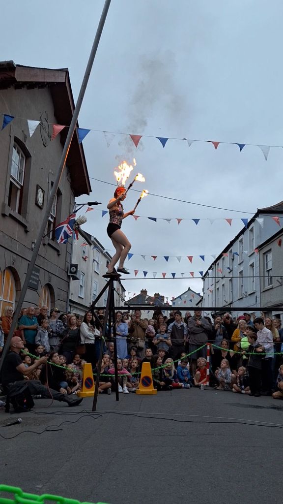 Street circus shows with balance in Devon , Dorset, Somerset & Cornwall and UK festivals